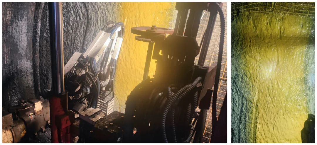 煤矿巷道的支护主要采用锚杆(索)与锚网联合支护的手段,锚网拿取、铺设、联网工艺繁多复杂,现有临时支护作用有限,易出现冒顶和片帮。为解决上述难题,开采研究院首次提出巷道表面喷涂高性能材料支护思路,以喷代网,同时具有临时支护作用,提高巷道成巷速度,保证作业人员安全。