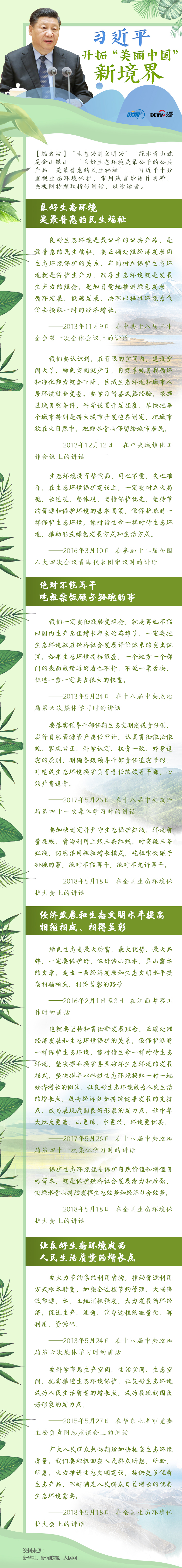 生态兴则文明兴,生态衰则文明衰。生态环境保护一直是习近平总书记的心中牵挂。无论是外出调研,还是参加中共中央政治局的集体学习,他反复强调生态文明建设的重要性。值此世园会开放之际,让我们重温总书记关于生态文明的深邃思考,去感悟丰富的生态文化。