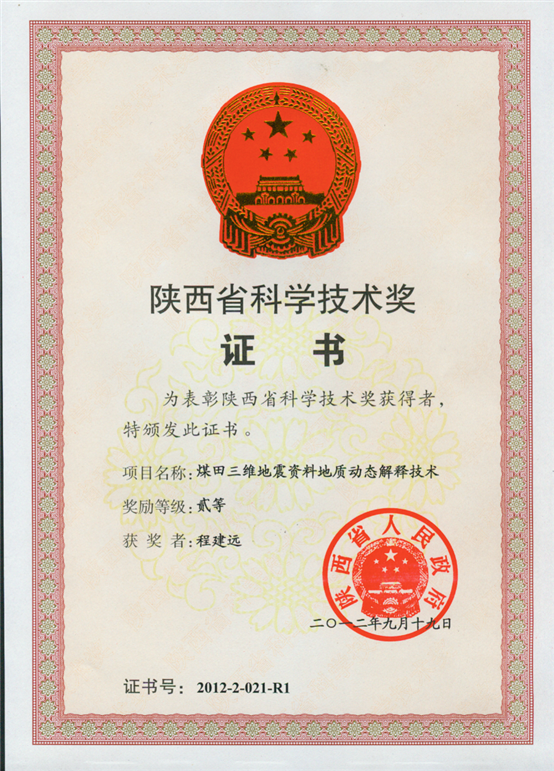 5 | 煤田三维地震属性地质动态解释技术 | 陕西省科学技术奖 | 二等奖 | 2012 | 1 |