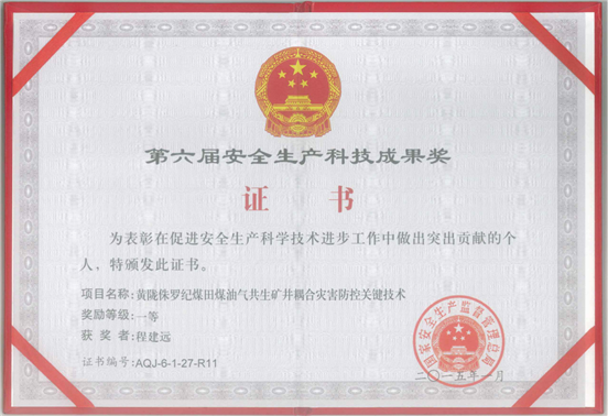4 | 黄陇侏罗纪煤田煤油气共生矿井耦合灾害防控关键技术 | 国家安监总局第六届安全生产科技成果奖 | 一等奖 | 2014 | 11 |