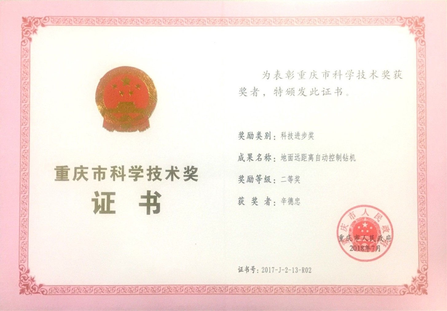 82017年地面远距离自动控制钻机获重庆市科学技术奖科技进步奖二等奖
