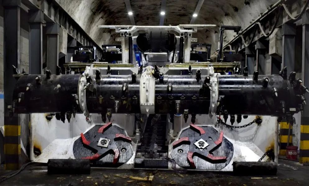 此套智能快速掘进系统是被誉为“煤海蛟龙”号的新一代煤矿快速掘进高端成套装备,总长150多米,通过一键操作实现掘进、支护、运输平行连续作业。蛟龙呼啸,尽显雄威,单月最高进尺提高至500米,掘进速度比传统工艺提高2倍,作业人员减少2/3,有效破解了采掘失衡的关键性难题,一举打破该地区煤矿进尺纪录。